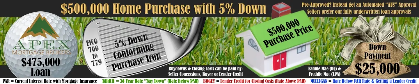 5% Down Purchase Loan Interest Rates for 760 to 759 FICO Scores